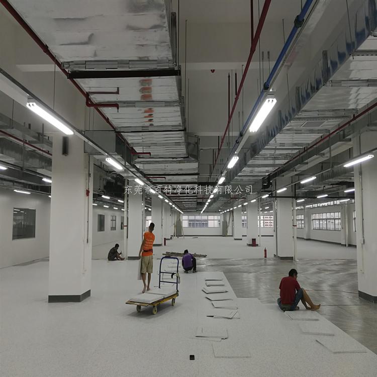在東莞工地施工PVC防靜電地板,工程量(liàng)8000平方米,此工程是新建廠房,應老客戶介紹(shào),在此包工包